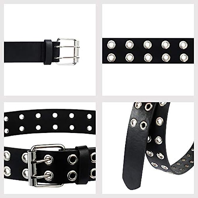 Pu Leather Buckle closure Dry Cloth Clean ❤Easy to match: The grommet belt is perfect for any outfit as jeans, pants, dresses with 2 rows of grommets, rather punk rock & cute look for men or women. ❤Beautiful design: Made from durable PU leather, and featured the most popular two rows of grommets and buckle, this double grommet belt adds a nice edgy touch to your outfits. ❤Easy to fit: Wide strap features 1.5" width all around fit for standard pant belt loop. ❤Warm notice: This Grommet Belt made of PU leather, which may have some smell. Please take it outside for couple days for the smell going away. ❤Wide application: If you are looking for a gift for someone who likes punk rock goth style belt, this rivet belt would be the perfect one. This fashion studded leather belt is also a great accessory for cosplay, bar, masquerade costumes, Halloween costumes or any 80's theme birthday parties. Ideal for men and women.
